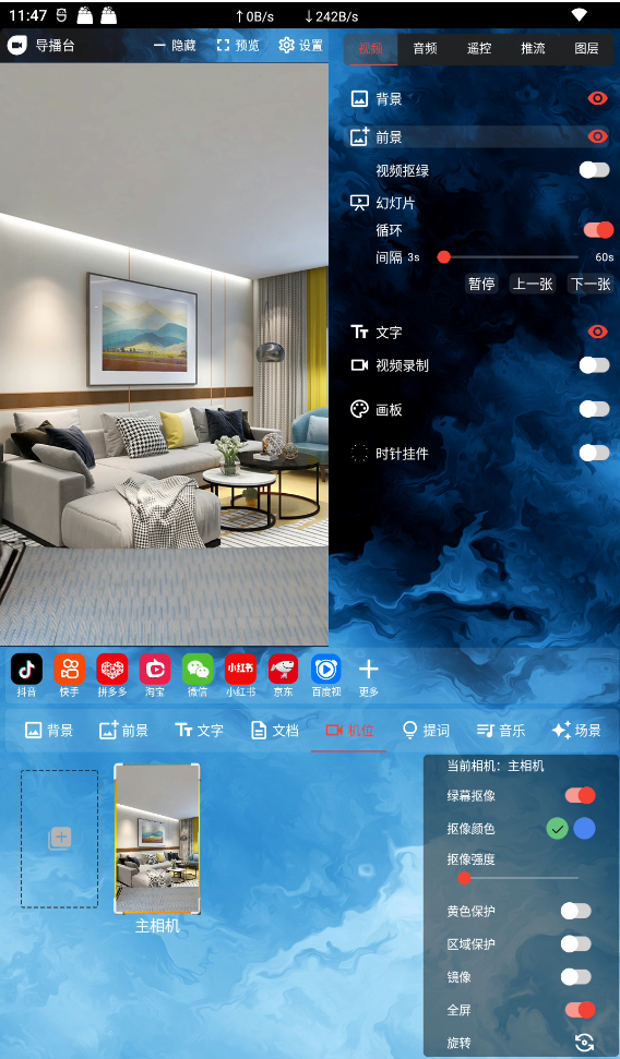 支持android手機(jī)投屏,將手機(jī)攝像頭、手機(jī)桌面無(wú)線投屏并疊加到直播間,支持手機(jī)遙控;